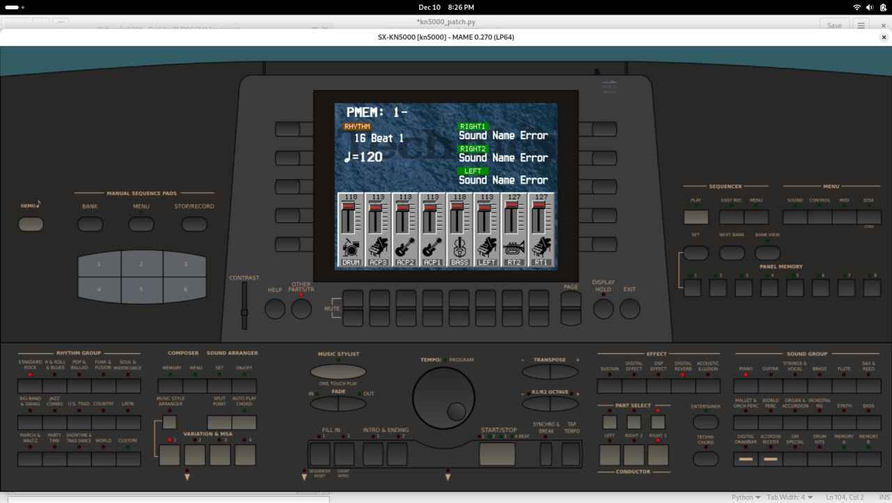 I have a sketch of a skeleton MAME driver for this kn5000 music keyboard, but it is way far from working state.